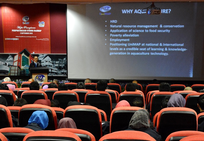 Majlis Profesor Universiti Malaysia Perlis (UniMAP) menganjurkan seminar perkongsian penyelidikan bidang akuakultur serta perikanan air tawar, air payau dan air masin di Auditorium Perpustakaan Tuanku Syed Faizuddin Putra (PSFP), di sini hari ini.